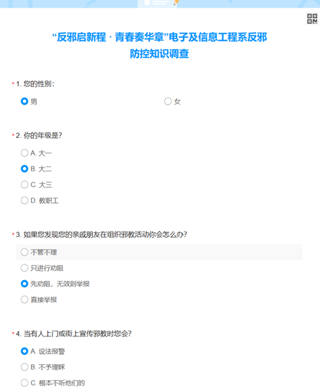 电子及信息工程系部分班级“反邪教”防控知识调查问卷