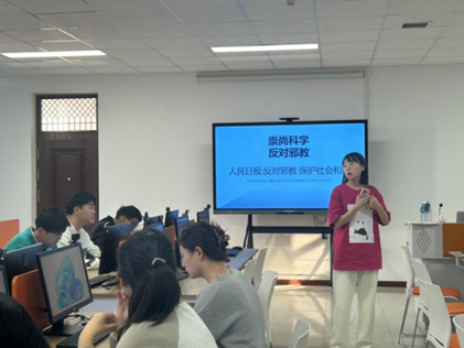 为坚决筑牢高校反邪教阵地,全面提升高校师生识别、抵御邪教侵蚀的意识,让大学生进一步认清邪教危害,提高防范邪教的能力,9月27日至10月10日,在信息系各位班主任的带领下,以“凝聚青春力量 共建反邪防线”为主题,通过反邪宣讲、问卷调研等形式开展反邪教宣讲及调研活动。结合开学季、双节小长假期间,全系协同、上下联动、条块结合,32个班级覆盖1400余名在校生,共开展反邪教主题班会30余次、“反邪卫士”荣誉勋章签名活动1400余人参加。