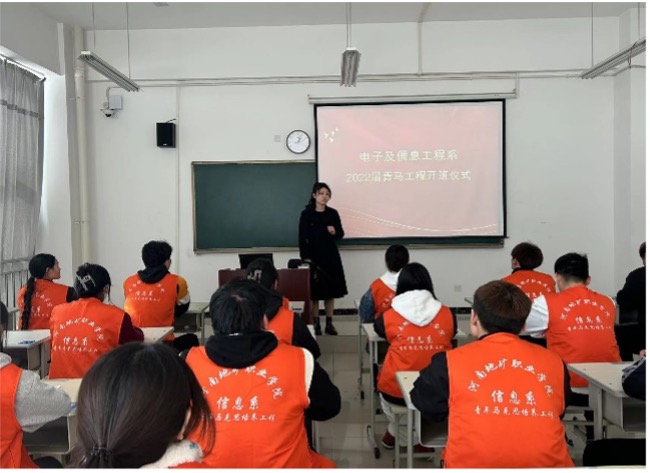 为深入贯彻落实党的二十大精神,推进青年马克思主义者培养工作,提高学生骨干的综合素质和能力,用党的先进理论武装、指引青年学子。3月1日,电子及信息工程系2022届“青马工程”开班仪式暨第一课在1号教学楼202教室举行,开班仪式由团总支书记董宇主持。